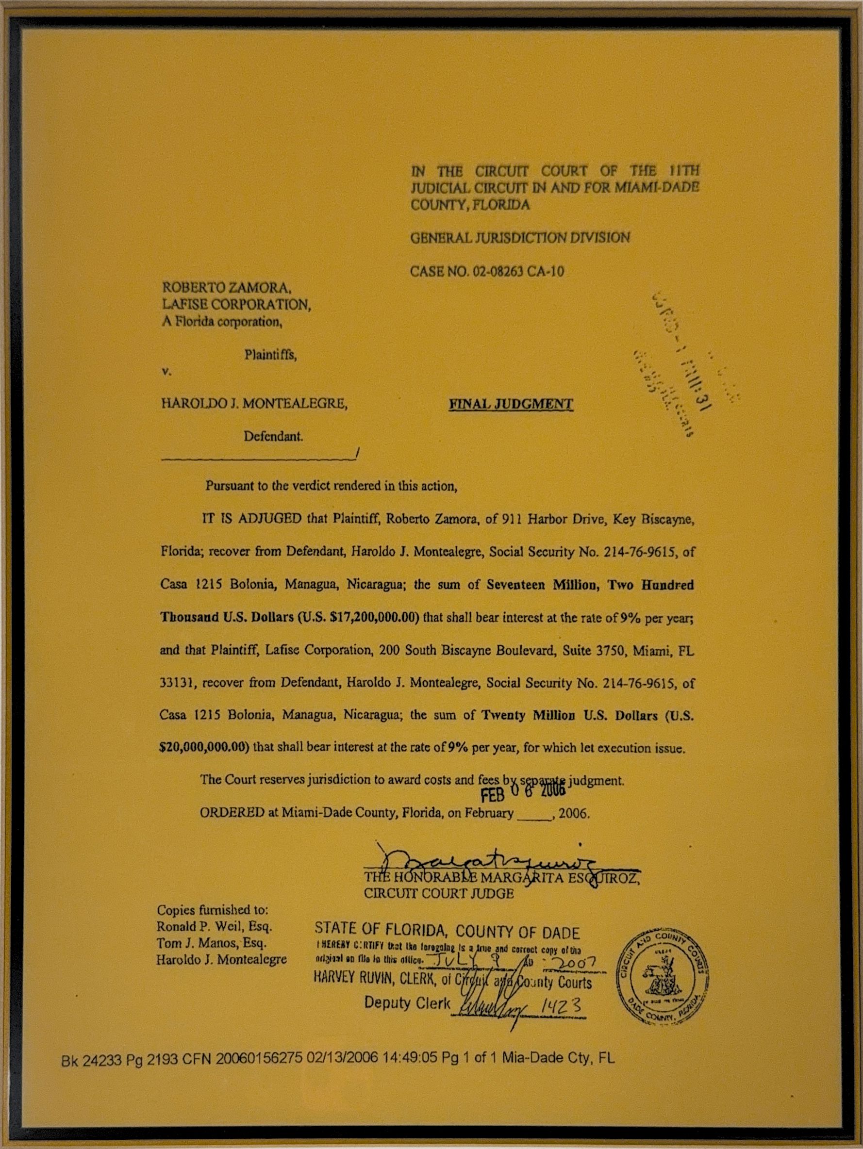 - Roberto Zamora, Lafise Coporation Vs Haroldo J. Montealgre